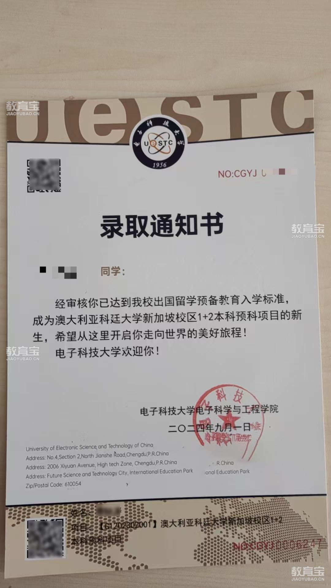 课程详情:如果学生选择的是1+2项目,该项目第一年在电子科技大学就读,之后两年在澳洲科廷大学新加坡分校就读,修满国外大学规定的学分课程,可以得到科廷大学本科学位。第一年就读期间享受电子科技大学校内资源,学生完成首年国内课程后,由电子科技大学颁发项目分数单和结业证书。