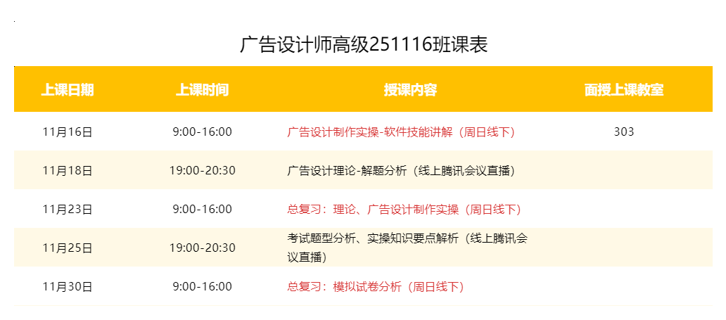 开班时间:11月16日周日开班